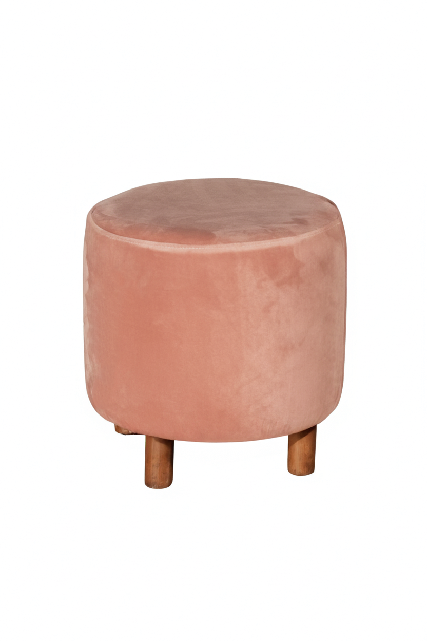 Banqueta Redonda com Pé Capa Veludo Rosé
